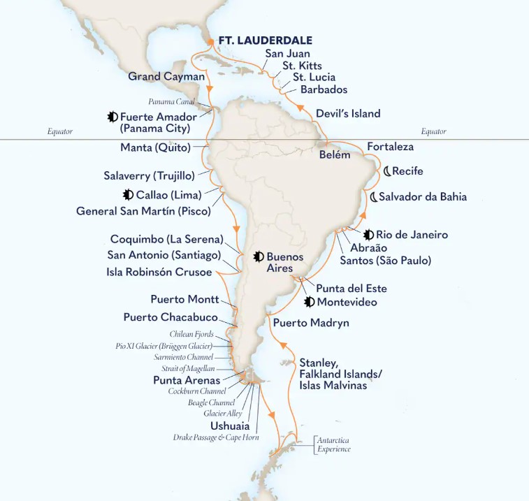 2027 Grand Voyages Reduced Deposit (“Reduced Deposit Offer”) is based on Promo(s) DD* and available for 1st/2nd guests in a stateroom only. Advertised fares include Taxes and Fees. Reduced Deposit Offer is a reduced per-person booking deposit available only on new bookings for select Grand Voyages, including the 2027 129-Day Grand World Voyage and 2027 70-Day Grand South America & Antarctica Voyage. Reduced Deposit on full Grand Voyages is reduced to US$1,000 (CA$1,450) per person when booked between January 23–May 15, 2026. Reduced Deposit on Grand Voyage segments is reduced to US$500 (CA$725) per person when booked between January 23–May 15, 2026. A second deposit is due on June 15, 2026, for all voyages. Second deposit amount varies by voyage. If the required second deposit is not received by June 15, 2026, the booking will be canceled and the Reduced Deposit Offer forfeited. Final Balance is due on final payment of the booking. Reduced Deposit Offer is available only on select cruises unless sold out or otherwise withdrawn. Standard refund and cancellation conditions apply. A deposit is required for all stateroom guests and the amount of deposit varies, even if deposit is reduced per Offer. Reduced Deposit Offer ends on May 15, 2026.