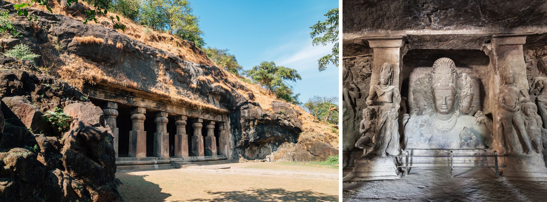 Visit the Elephanta Caves, a UNESCO World Heritage Site. The collection of cave temples are located just off the shore of Mumbai, on Elephanta Island, and contain a series of sculptures and carvings depicting Hindu symbols.